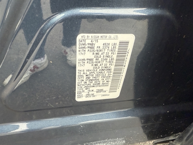 | VIN | JN8AS5MV2FW255986 |