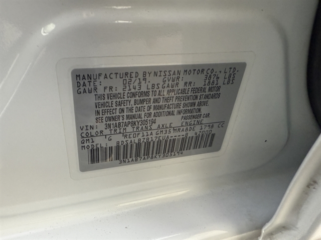 | VIN | 3N1AB7AP8KY305194 |