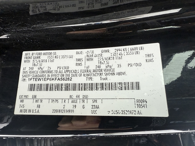| VIN | 1FTEW1EP6KFA56282 |